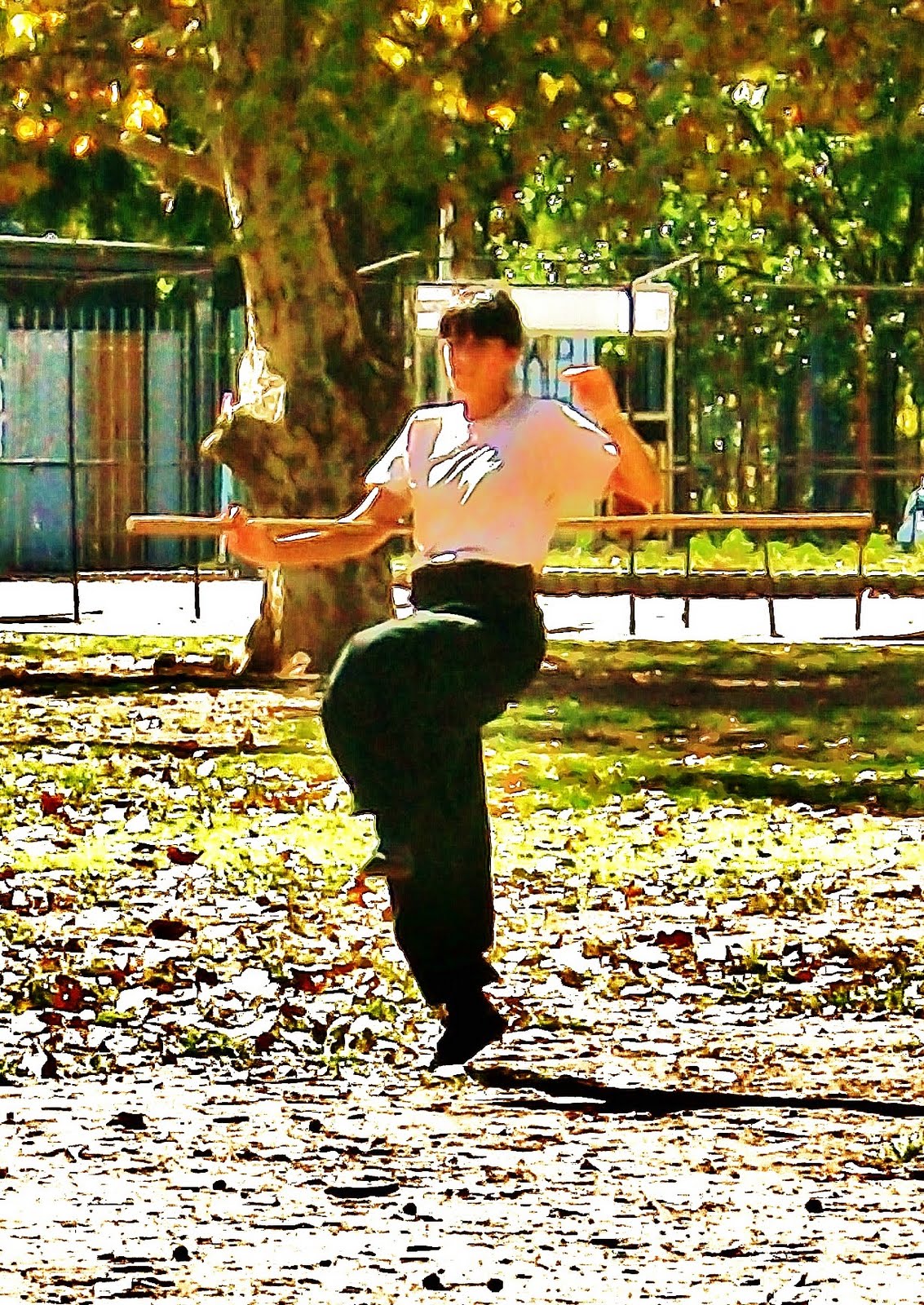 Practicando Artes Marciales a orillas del Parque